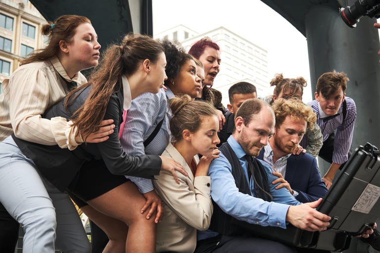 As Co-Artistic Director of GymJam Theatre (2009–2025), I led the development of playful and politically urgent work. Our flagship production Anthropocene (co-produced with Oxford Playhouse) was created during the pandemic and reimagined as an immersive, choose-your-own-adventure film inspired by Bandersnatch, the Choose Your Own Adventurenovels of my childhood, and Gecko’s Time of Your Life. The piece went on to win an OFFIE Award, was streamed globally, and featured as part of the COP26 Climate Summit.