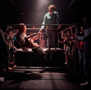I am a Movement Director who specialises in drawing on the imagination, skills, and individuality of the collaborators in the room. My approach isn’t shaped by formal dance training but by years of performing, devising, and playing sport at a high level — experiences that have given me a deep understanding of physicality, teamwork, and precision.